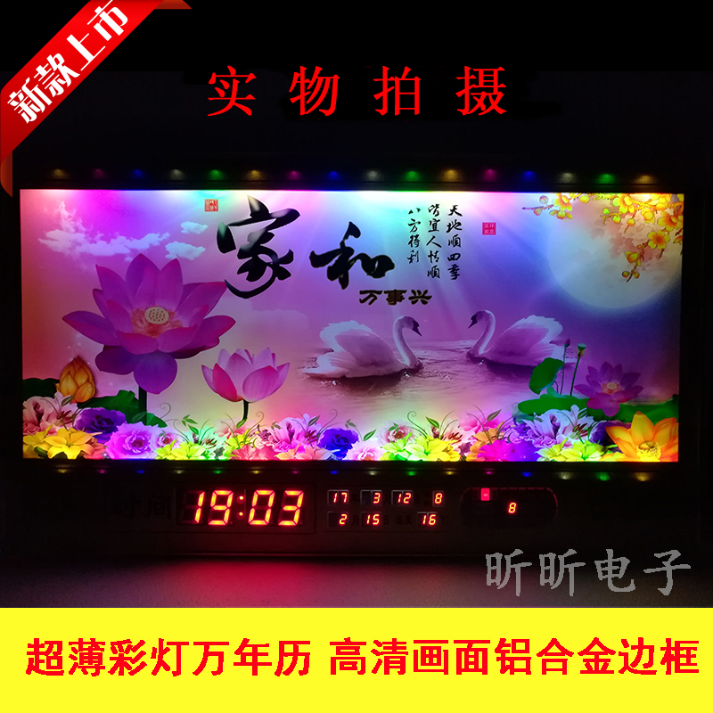 新房客廳裝飾日歷掛鐘,家和風(fēng)景萬年歷,超薄七彩燈光更漂亮