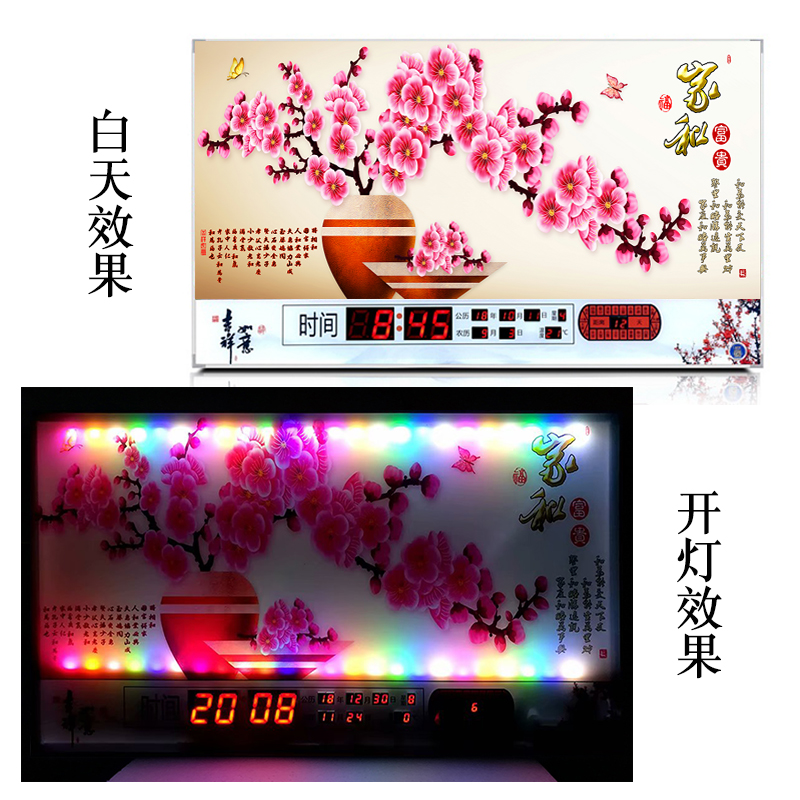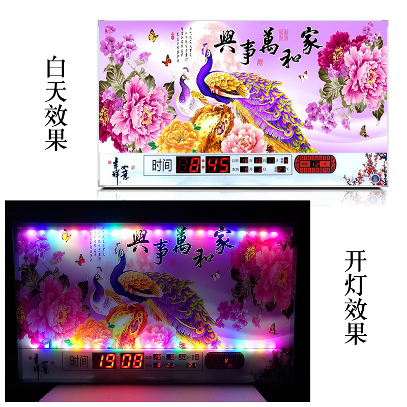 新房客廳裝飾日歷掛鐘,家和風景萬年歷,超薄七彩燈光更漂亮