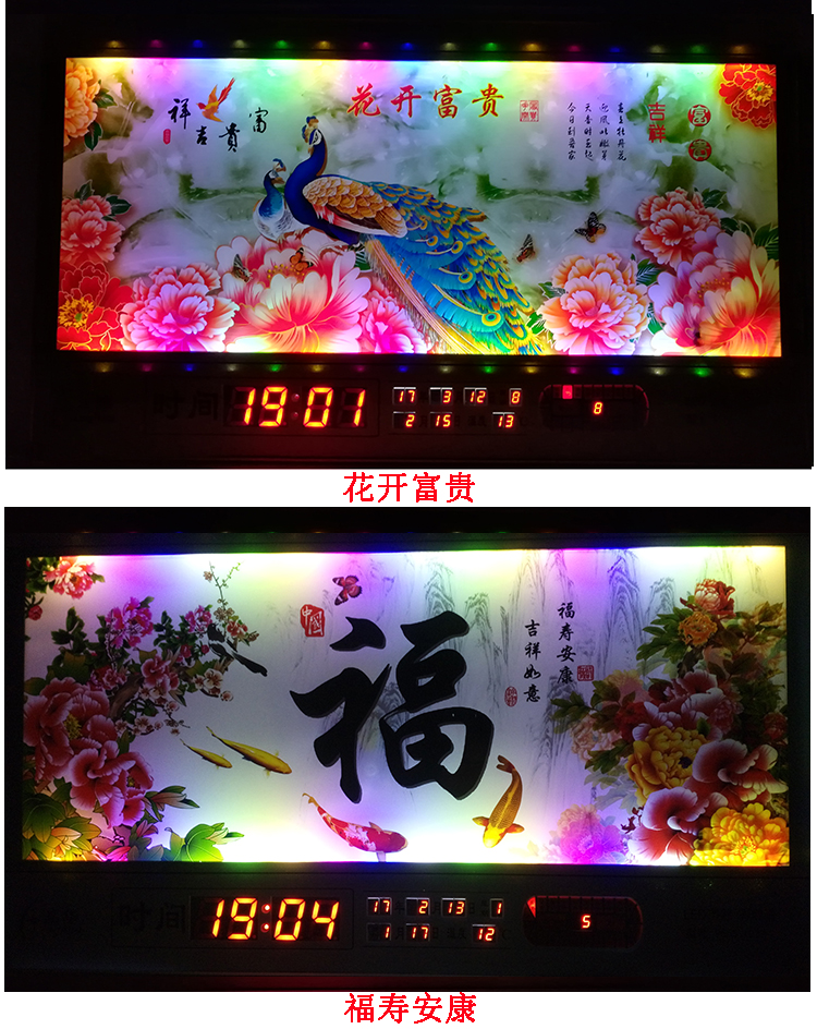 新房客廳裝飾日歷掛鐘,家和風(fēng)景萬年歷,超薄七彩燈光更漂亮